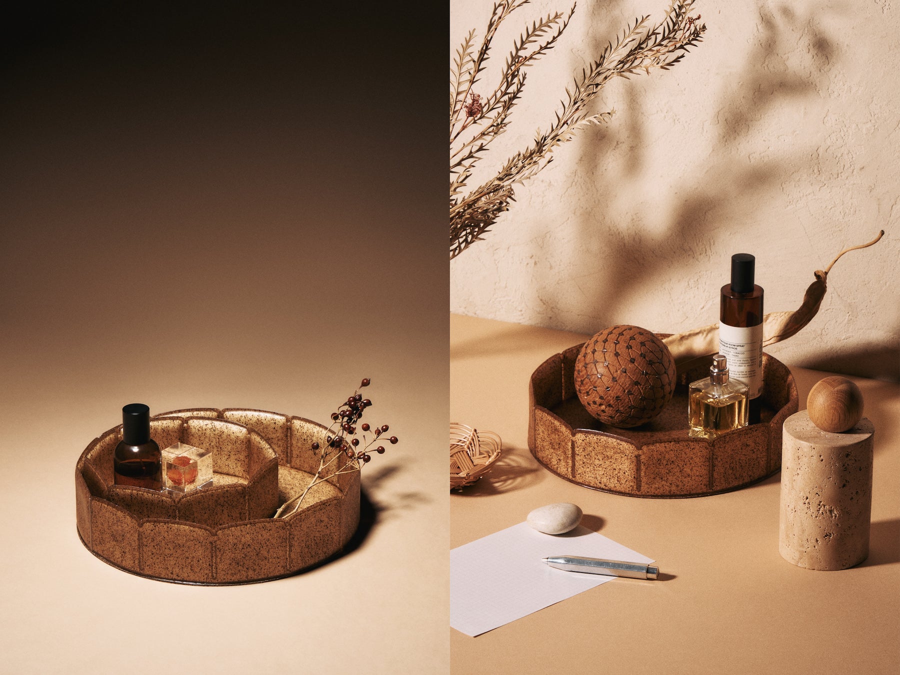 この製法により形作られた、柔らかなフレームは、アクセサリーなどを置くための受け皿にもなります。