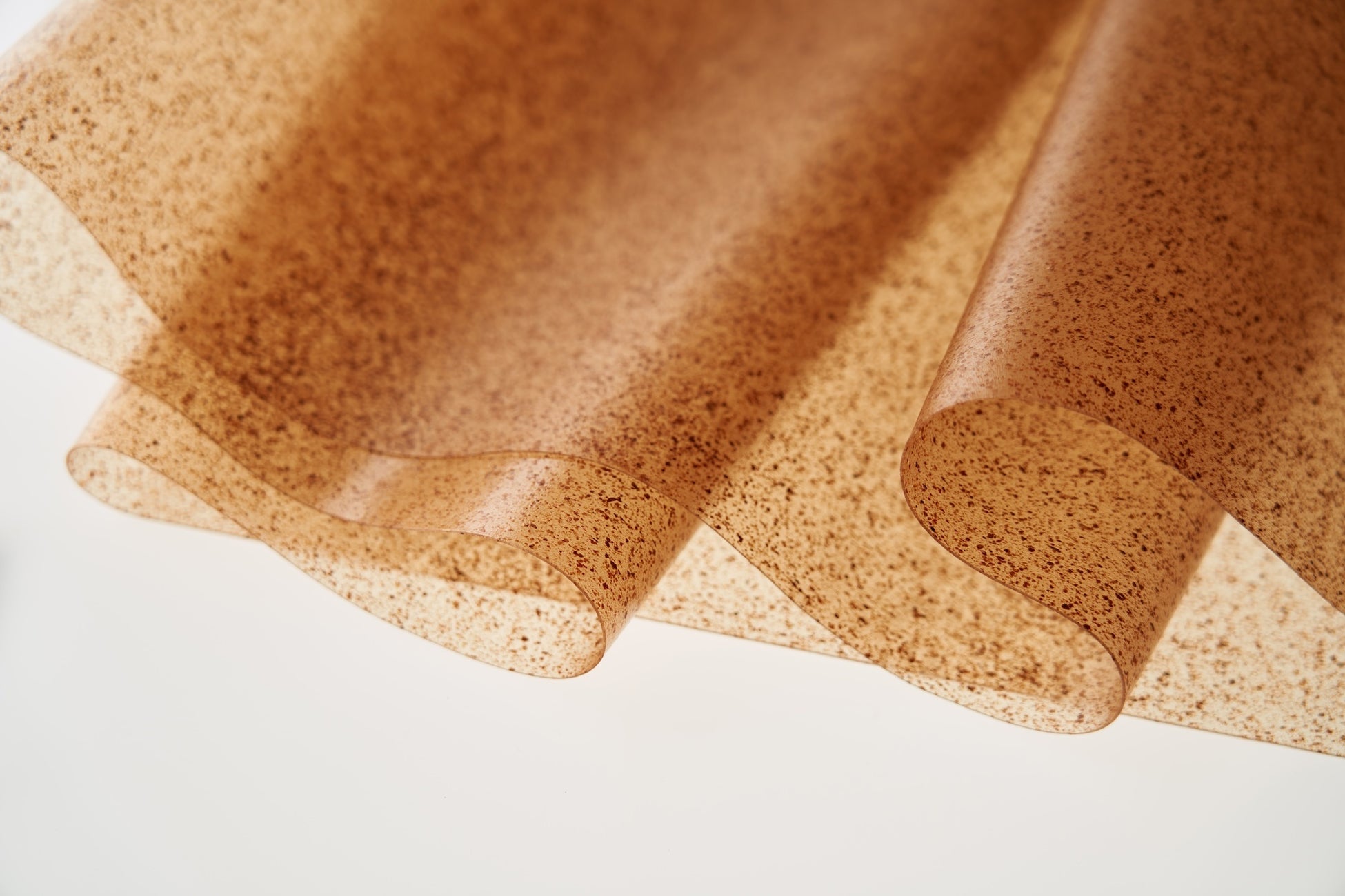 Adamは、ジュースやシードルを製造する過程で大量に排出されるりんごの搾りかすを原料とするシート素材です。
