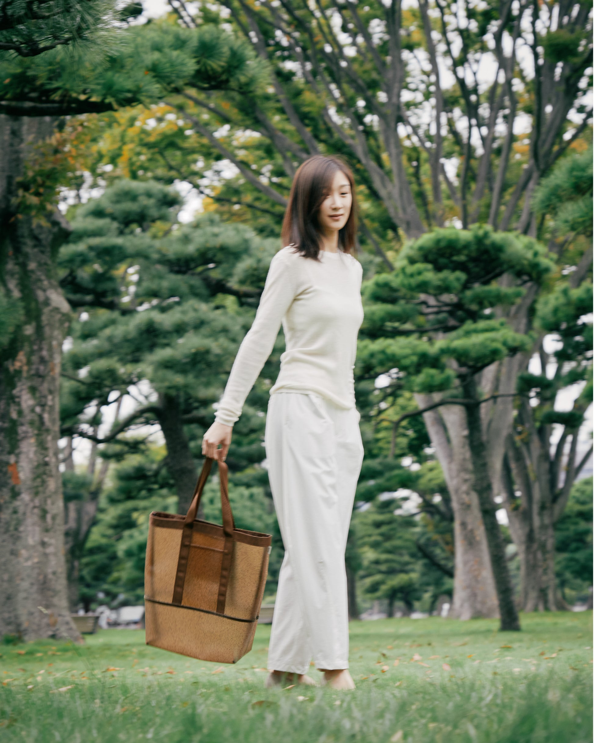 This tote bag is easy to use and water resistant, making it perfect for beginners. The bottom has a 13cm gusset and can hold up to three 2L plastic bottles. Body size: Height: 650mm (including handle) / Width: 420mm / Thickness: 130mm
